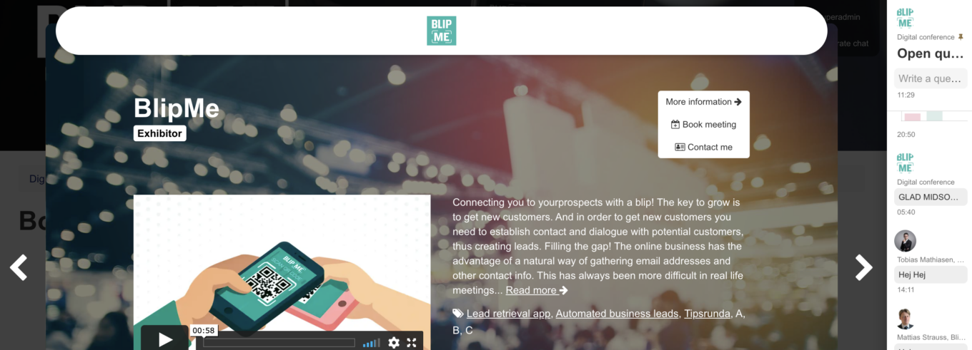 Nur eine optimale Präsentation hinterlässt bleibenden Eindruck. Deshalb bewerben Unternehmen, Aussteller, Partner und Sponsoren ihre Produkte und Dienstleistungen am besten auf InvitePeople – und hinterlassen hier Kontaktdaten für ihre BesucherInnen. Diese wiederum können ihre Kontakte mit den Unternehmen teilen, Nachrichten versenden und Video-Meetings selbst buchen.