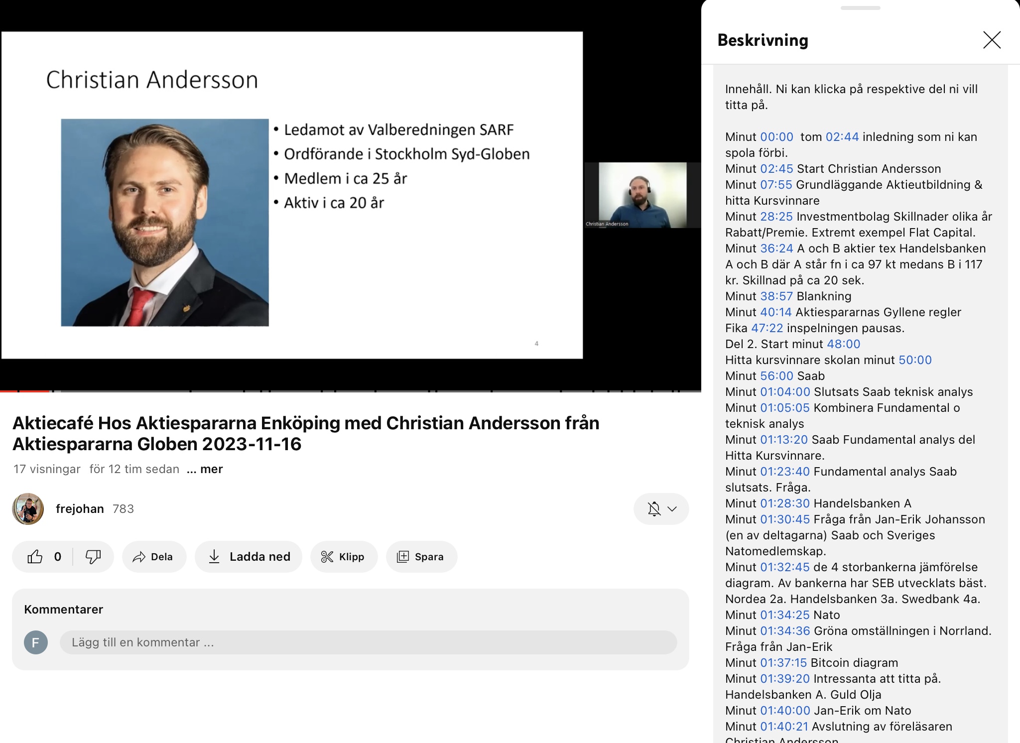 kl 20:15-20:50 Del 2. Fortsättning på Aktiecafet av Christian Andersson.